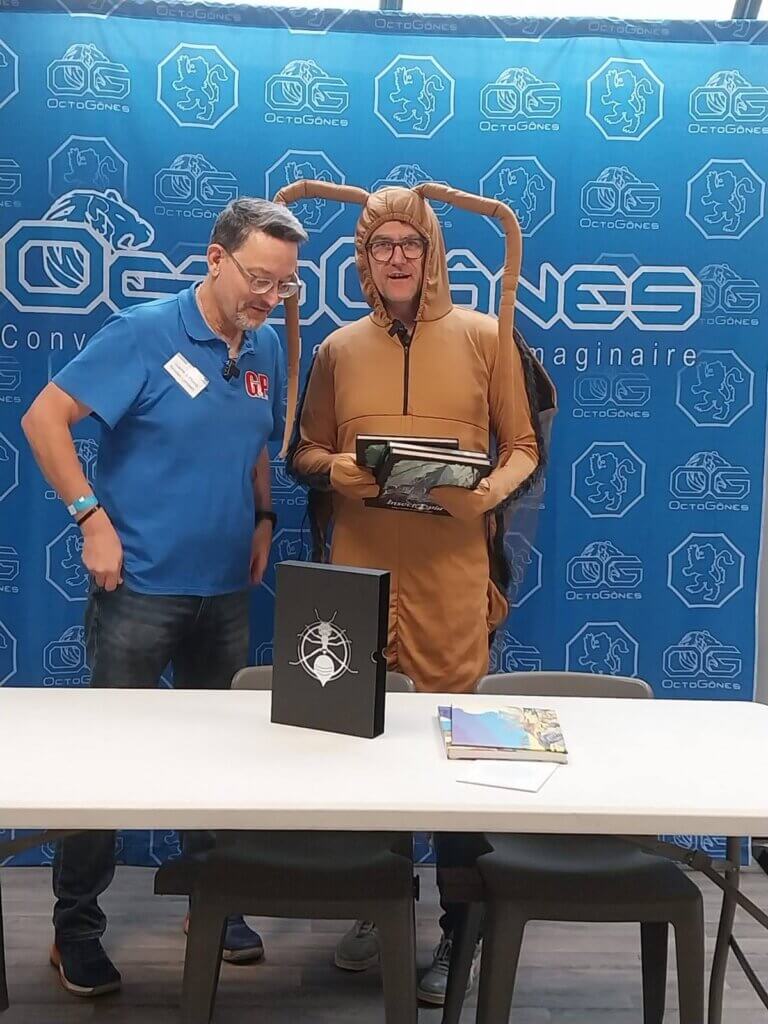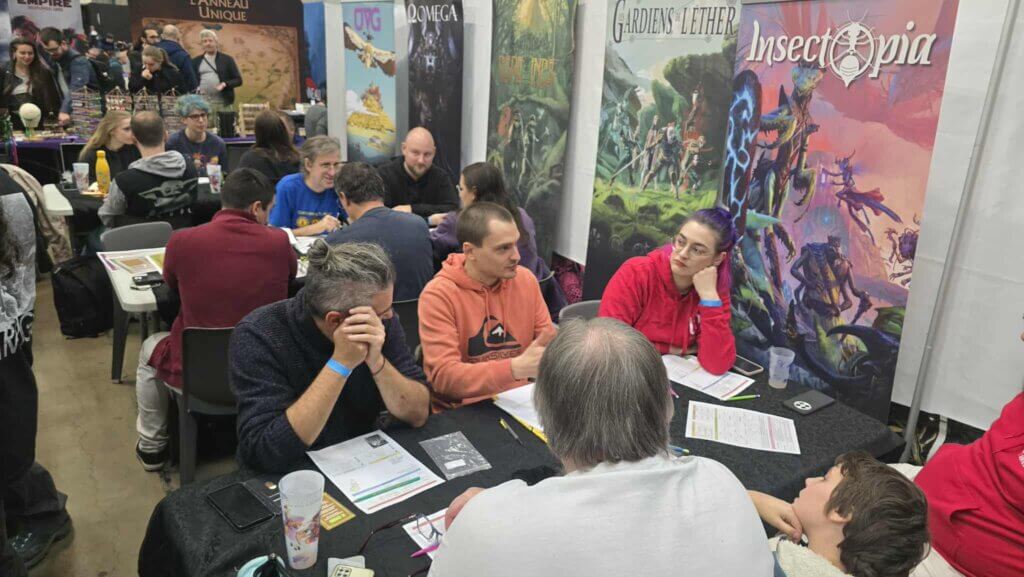 OctoGônes 15 est fini et ce fut encore une belle édition avec de nombreux éditeurs présents et pleins de nouveautés ! Quelques photos ci-dessous dont certaines prises chez Guillaume Hatt, Frederic Sapp et Nicolas Lamberti ! J’étais au stand Odonata qui avait : UVG en VF qui est tout bonnement splendide avec son livre de campagne/jeu, son écran avec la carte et de merveilleux visuels (des cartes postales et des formats A5) et les trois suppléments pour Insectopia : le second volet de la campagne Imago Veridis, un recueil de scénarios et une nouvelle menace avec les Lézards avec quelques scénarios dedans ! :O <3